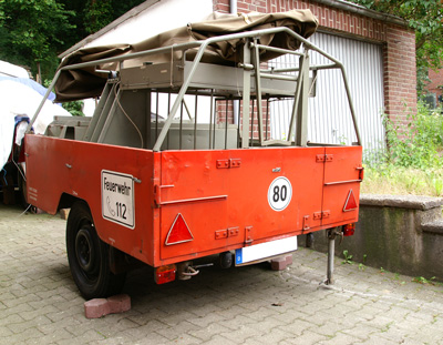 Ende Mai wurde die Umschlüsselung des fast fünfzig Jahre alten ÖSA in "SDAH Plane und Spriegel" in Angriff genommen und der Anhänger beim TÜV vorgeführt. Beanstandet wurde die falsche Bereifung, die sich leider als nicht eintragungsfähig herausstellte. Die Beschaffung der zulässigen Reifengröße erwies sich als schwieriges, aber letzendlich nicht unlösbares Problem, so daß der ÖSA nur wenig später auf niegelnagelneuen Michelin-Reifen beim TÜV vorgeführt wurde. Ab Anfang Juni 2013 darf der nun "zivil zugelassene" "Ex-ÖSA" als Mehrzweckanhänger (MZA) auch "nicht-feuerwehrspezifische Ladung" befördern.