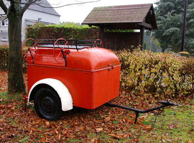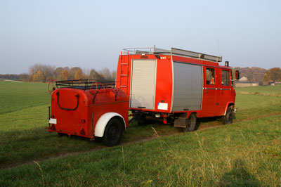 Uns freut es sehr, daß nach seiner Trennung durch die Versteigerung des LF8 im März 2012 dieses Habacher Feuerwehr-Gespann im November 2012 nun wieder in seiner Originalbesetzung vereint ist. Vielen Dank an die Kameraden der Freiwilligen Feuerwehr in Habach! Sicherlich wird das Gespann zukünftig bei (Feuerwehr-) Oldtimertreffen zu sehen sein. Zuvor steht in nächster Zeit allerdings eine komplette technische Durchsicht (insbesondere Radlager) und die Reparatur der Beleuchtung auf dem Programm. [Ergänzung: Die Beleuchtung ist bereits überholt; die Radlager werden bei Gelegenheit prophylaktisch überholt.]