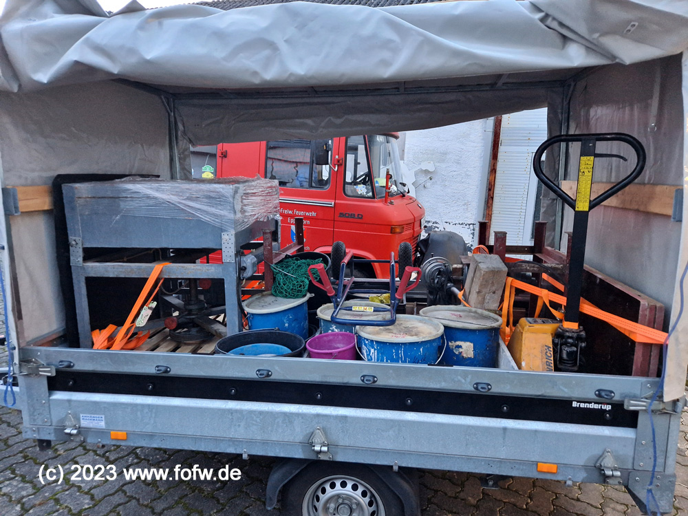 20230101 - 10+1 Jahre FOFW und 5 Jahre Ex-ELF1 / KDOW Volkswagen Golf III Variant Leider konnte sich die Freiwillige OldtimerFeuerwehr Wiesenberg im vergangenen Jahr insbesondere wegen des sich über gut neun Montate hinziehenden Hallenumzugs vom Saarland in Westerwald und Rheinland, bzw. der Hallenauflösung samt Umstrukturierung, nicht auf ihr Zehnjähriges Bestehen konzentrieren. Ebenso war aus Zeitgründen keine Teilnahme an Oldtimer- oder Feurerwehr-Treffen möglich. Statt Feiern gab es reichlich Sortier- und Schraub-Wochenenden. Hoffentlich ergibt sich dieses Jahr endlich wieder die Gelegenheit, den "Eppelflori" wieder zu ein paar Treffen zu fahren. Mit neuen Hinterreifen und neuem Auspuff sollte technisch dem Vorhaben nichts entgegenstehen. Ein paar kleine Jubliäen gibt es auch dieses Jahr: Der Tragkraftspritzen-Anhänger aus dem Hause Bachert wird 60 Jahre alt! Das wäre ein guter Anlaß, ihm mal wieder etwas frische Luft zu gönnen. In diesem Jahr liegt auch der Umbau und die folgende Umschreibung des Ziegler Ölschaden-Anhängers zum Mehrzweckanhänger bereits zehn Jahre zurück. Und der ehemalige ELF1 / KDOW Volkswagen Golf III Variant bereichert als PKW Kombi seit nunmehr fünf Jahren unseren Fuhrpark.